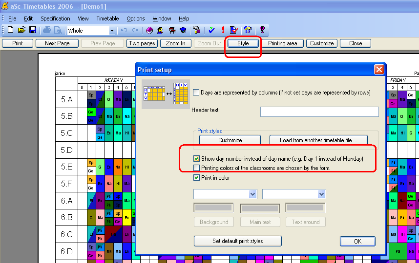 Puede cambiarlo en el menú Vista preeliminar/botón Estilo: