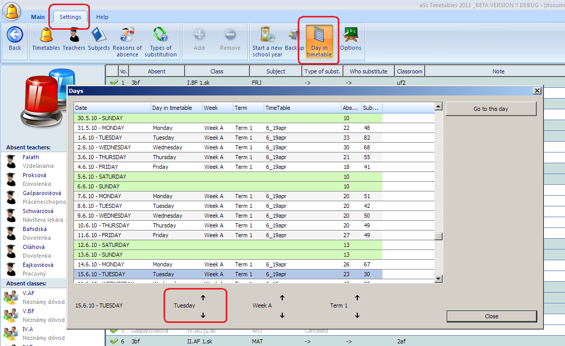 For each day in the substitution software you can manually change the day (week/term). This timetable day is then used to determine what has to be substituted.