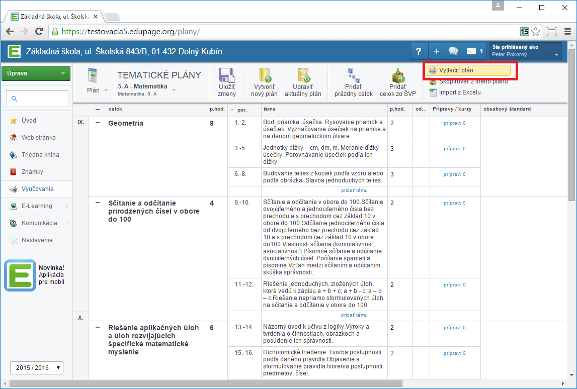 Plán si môžete vytlačiť pomocou "Vytlačiť plán":