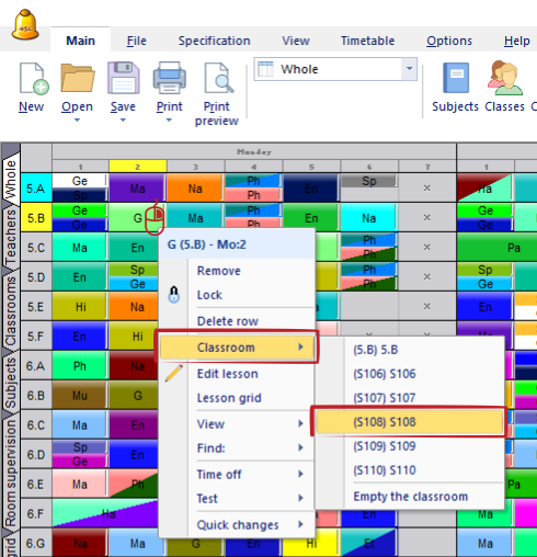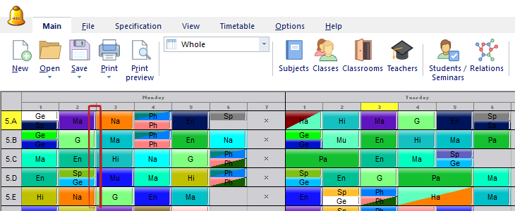 Napríklad: V pondelok na prvú hodinu ste umiestnili tri hodiny TV, avšak na vašej škole sú len dve telocvične, potom bude nutné posunúť jednu hodinu TV na iný čas... Preto je v podobných prípadoch lepšie jednoducho znova nechať pregenerovať celý rozvrh ako upravovať učebne manuálne.