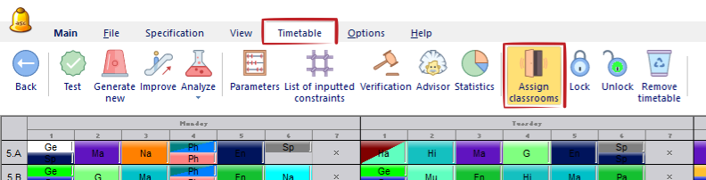 Štandardne odporúčame zadať všetky povolené učebne, do ktorých môžu byť jednotlivé vyučovacie hodiny umiestnené, už pri vytváraní samotných vyučovacích hodín. Viac informácii tu: Ako prideliť hodiny do učební?