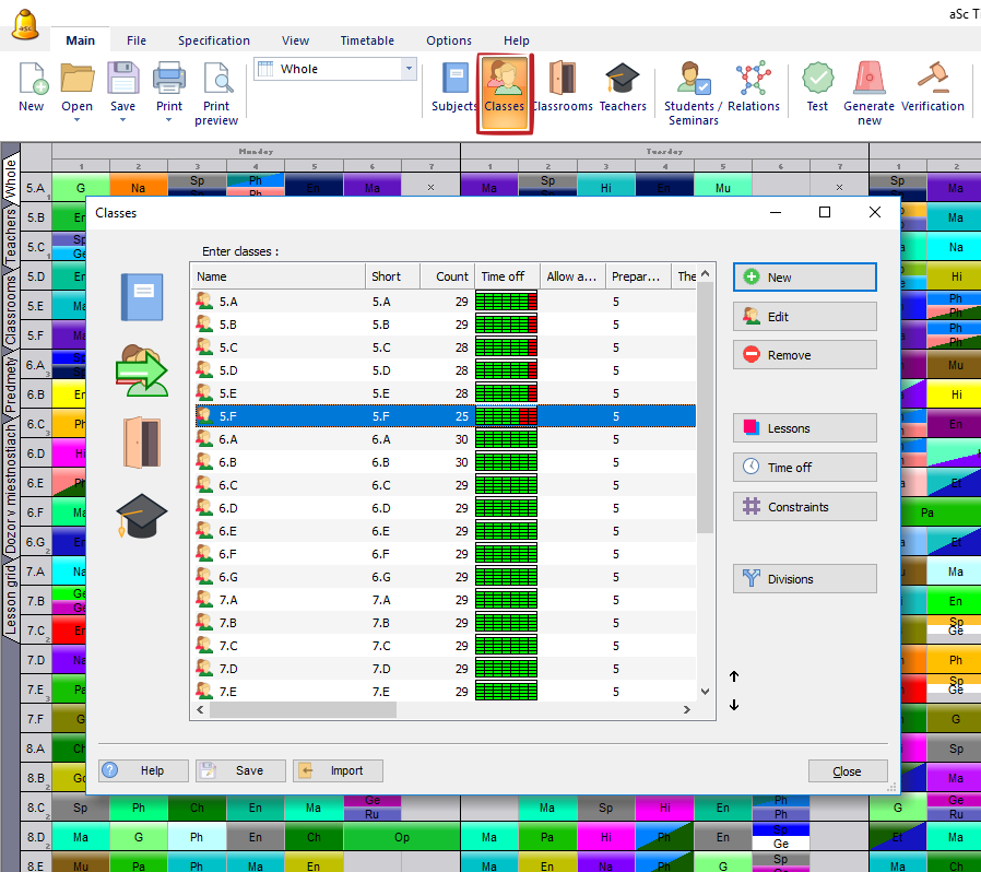 Žiaci, ktorí patria do 5A budú potom mať "viac-menej" rovnaké rozvrhy. Pravdepodobne nie úplne, nakoľko niektoré hodiny môžu byť vytvorené iba pre skupiny žiakov tejto triede a môžu sa teda líšiť.