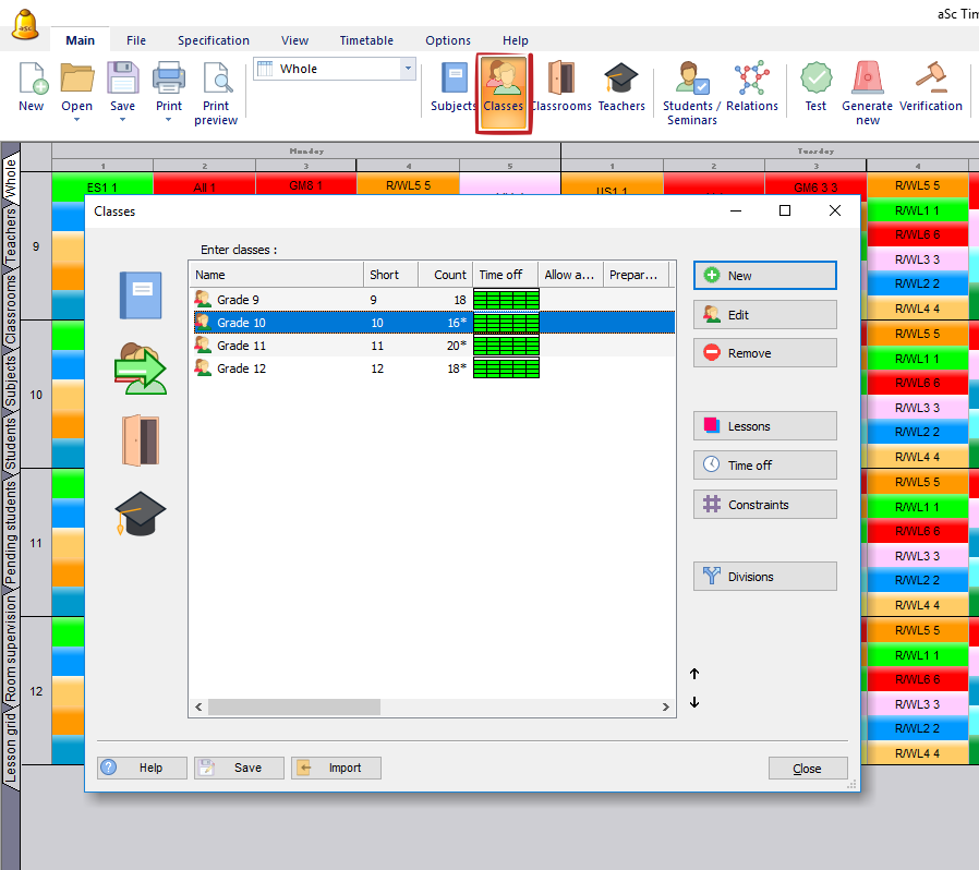 Niekedy však je nevyhnuté vložiť do rozvrhu aj konkrétnych študentov. Každý študent musí byť zadelený v niektorej z tried. Napríklad "Ján Novák zo 4.A"
