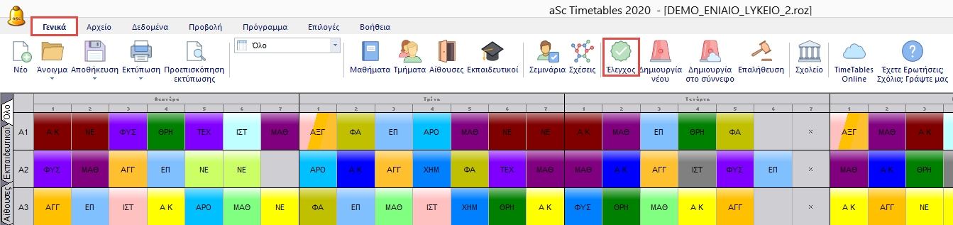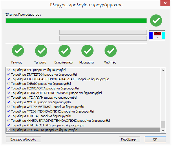 Πριν από τη δημιουργία του Ωρολογίου Προγράμματος είναι αναγκαίο να ελέγξετε αν το πρόγραμμα μπορεί να δημιουργηθεί.