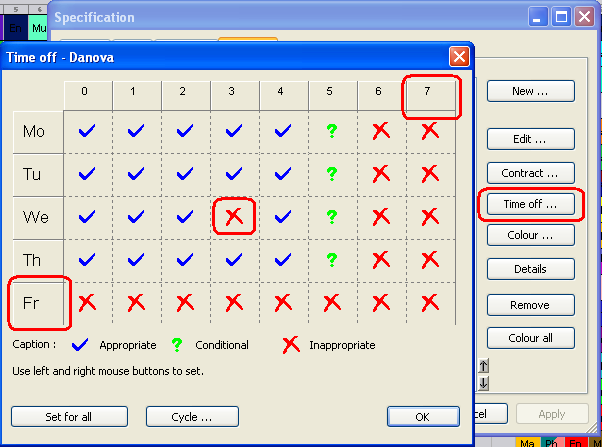 للصفوف, القاعات الدراسية, والمواد تستطيع تحديد ما يسمى " العطلة ". وهي تحدد متى يكون الدرس "أزرق" ومتى لا يكون "أحمر". تستطيع أيضاُ تحديد ما يسمى "موقع علامة الأستفهام", اين سوف يكون الدرس ولكن تحاول تجنب الدرس في ذلك الوقت: