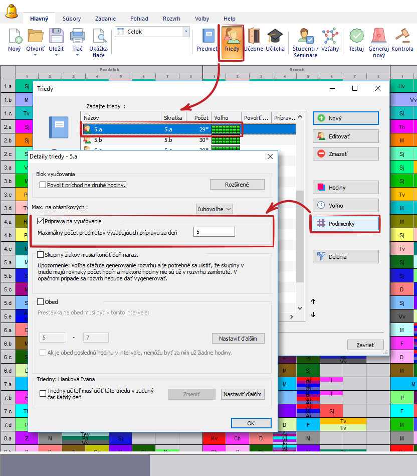 Potom môžete určiť maximálny počet týchto predmetov, ktoré môžu byť v jeden deň. Môžete to určiť individuálne pre každú triedu.