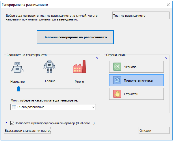 - ако извършвате интензивна изчислителна работа на вашия компютър докато генерирате разписание