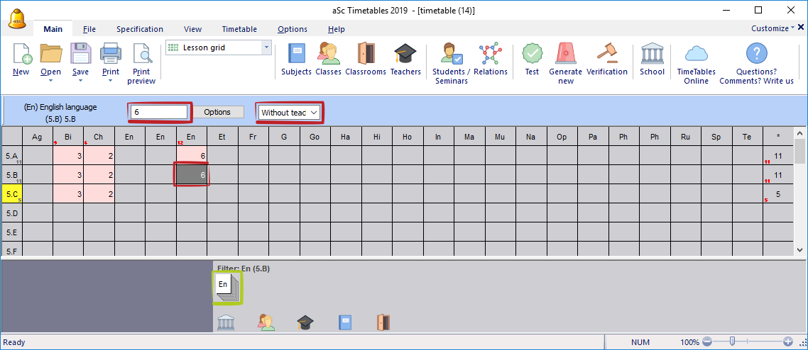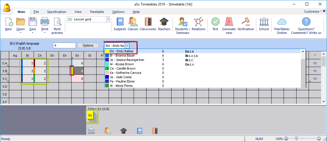 3. Once you know you can assign a teacher that will teach this lesson. Simply select the lesson and type first letter of this teacher or click into the combobox: