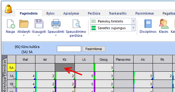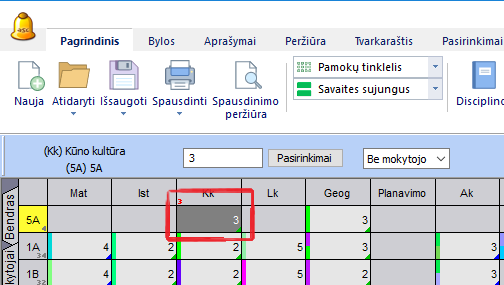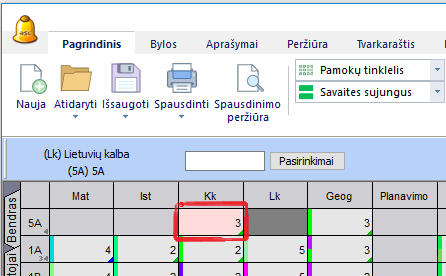 Pamokos įrašymas pamokų tinklelyje