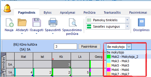 Pamoka bus nuspalvinta rožine spalva - ji reiškia, kad pamokai dar nėra paskirto mokytojo.
