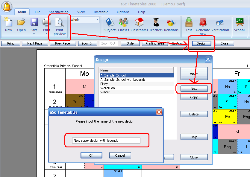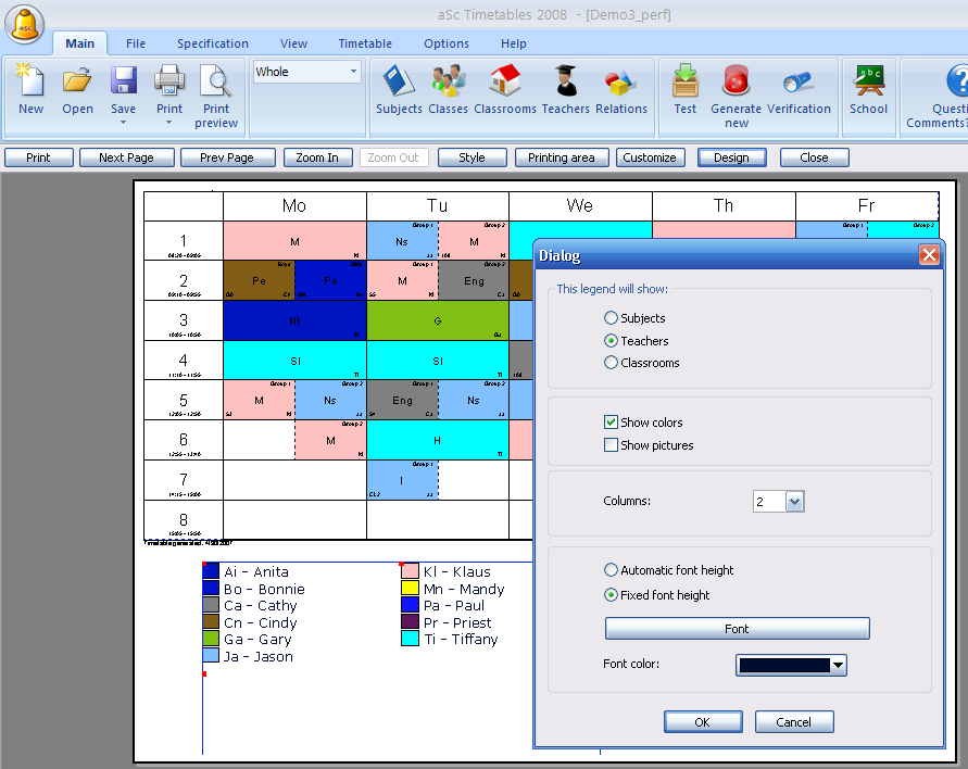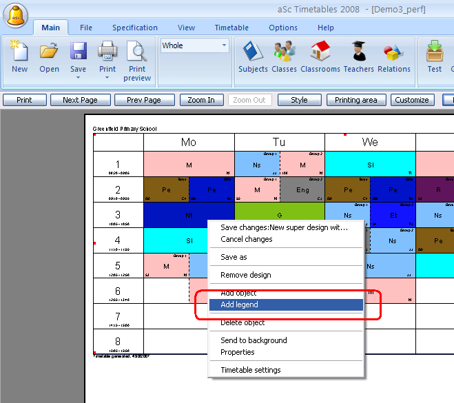 Po kliknutí OK môžete legendu presunúť na žiadanú pozíciu a zmeniť veľkosť. Môžete pridať aj ďalšie legendy (učitelia, predmety) alebo pravým klikom zmeniť vzhľad legendy.