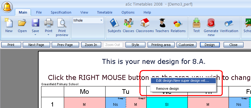 Potom ho aplikujte na vybrané triedy alebo učiteľov a stlačte pravé tlačítko myši na Editovanie dizajnu: