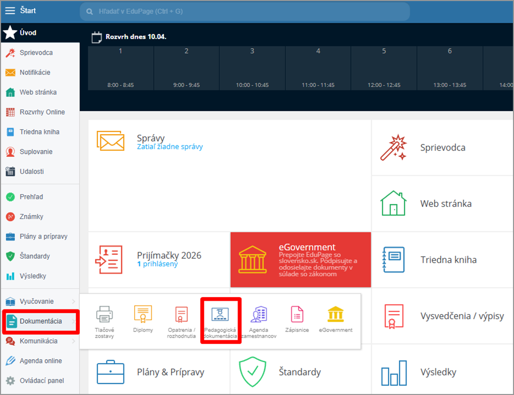 Modul je prístupný cez Dokumentácia/Pedagogická dokumentácia. Následne si zvoľte Vysvedčenia/výpisy.