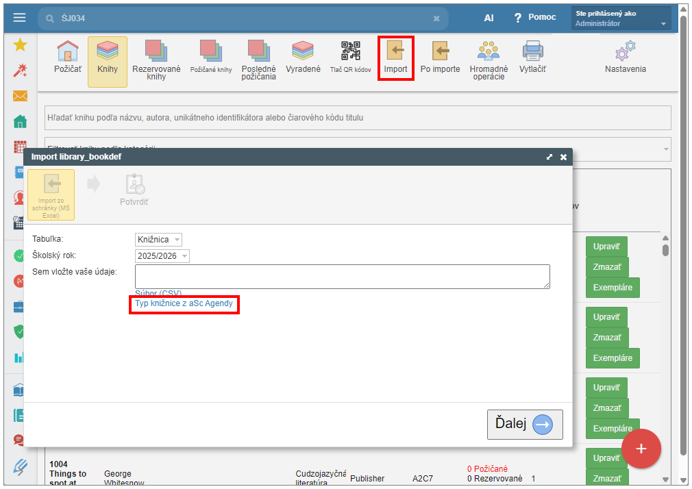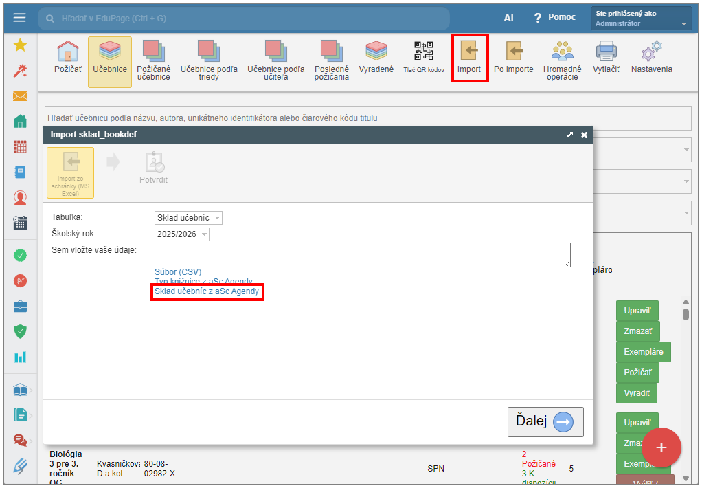 Ako naimportovať knihy do knižnice/skladu učebníc z aSc Agendy?