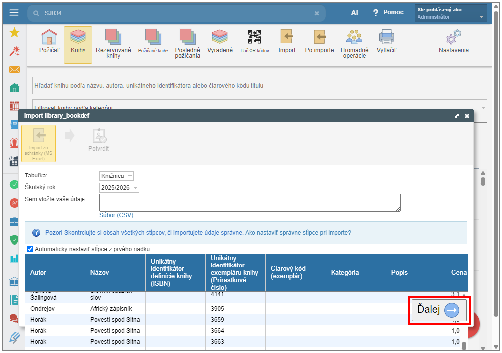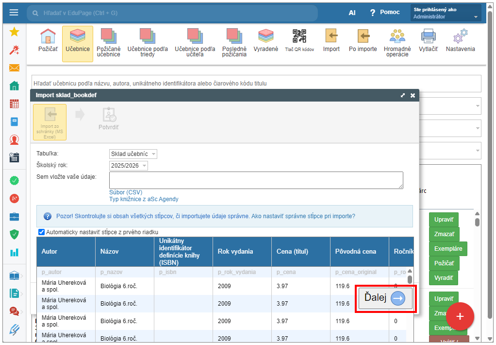 Ako naimportovať knihy do knižnice/skladu učebníc?