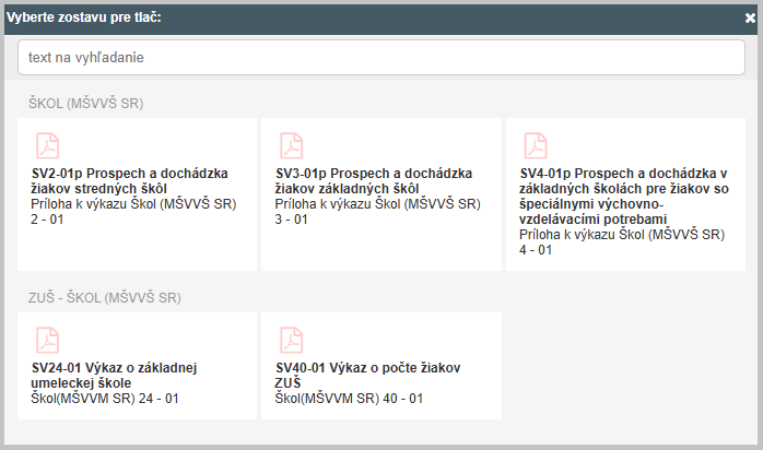 Štatistický výkaz - prospech a dochádzka (Škol SV2-01p, SV3-01p, SV4-01p)