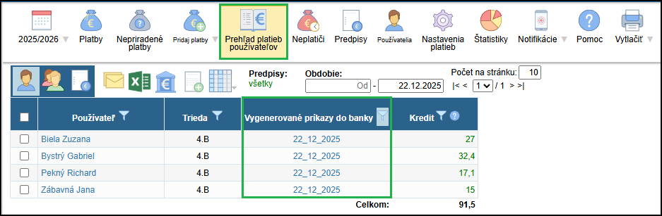 Vyplatené príspevky na dopravu žiakov nahráte na EduPage aby sa spárovali so zadaným poplatkom - Vrátenie preplatkov - ako zaevidovať vrátenie preplatku/platby