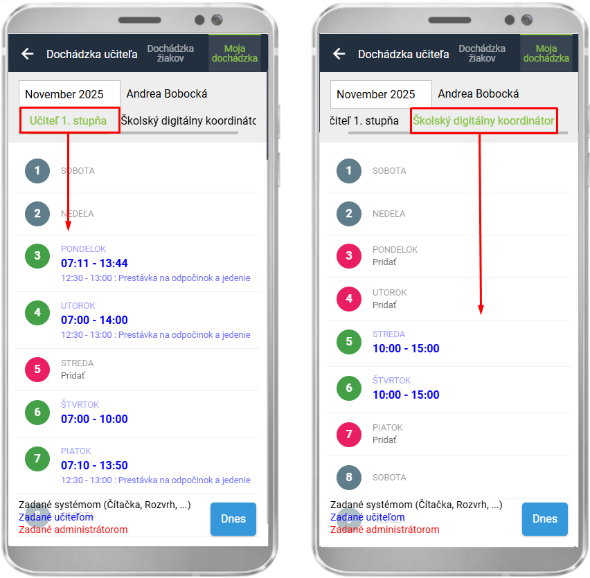 Ako si viacpomerový zamestnanec zaeviduje svoju dochádzku v aplikácii?