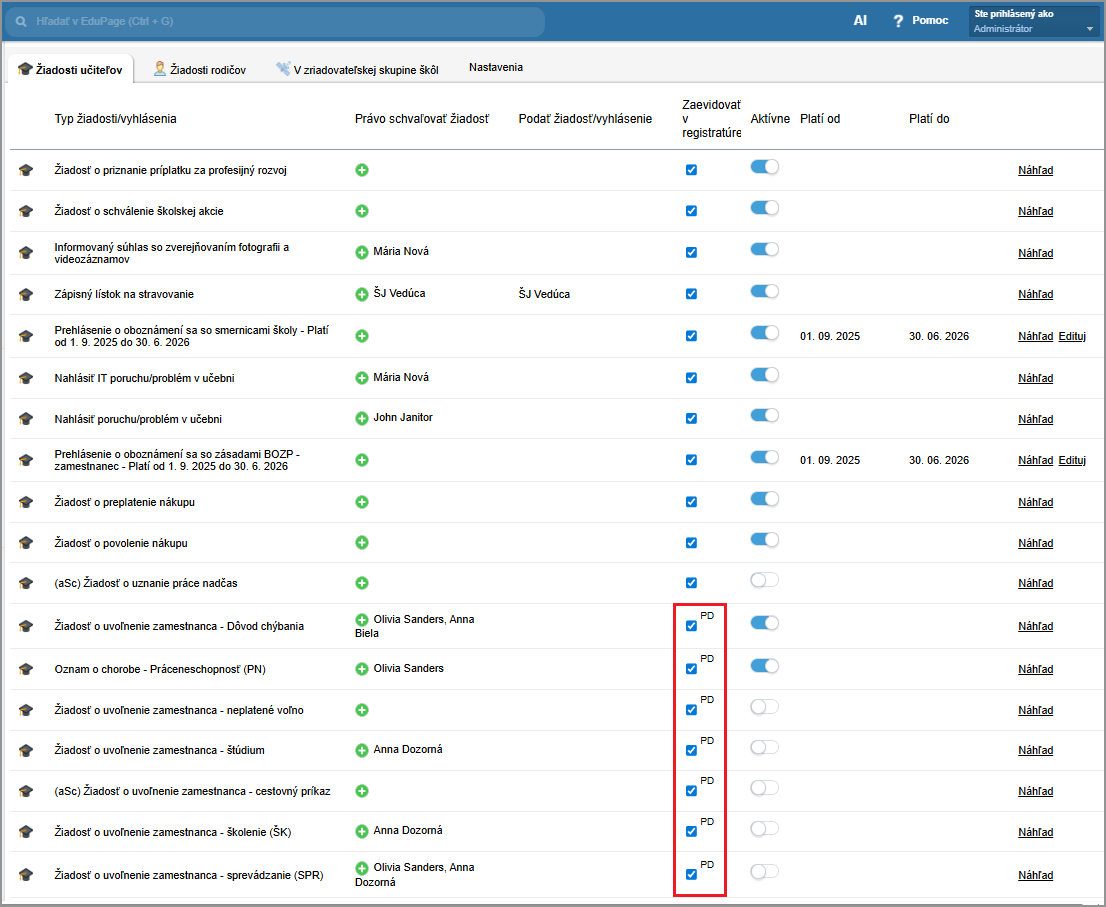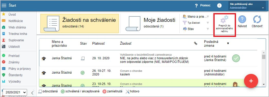 Žiadosti učiteľov a žiakov sa pri schvaľovaní automaticky evidujú v registratúre.