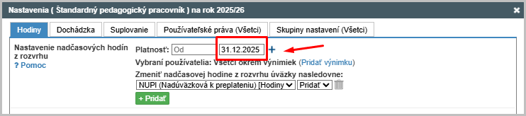 Nastavenie platnosti rozvrhových nadúväzkových/nadčasových (NUPl/NUNv) hodín v ŠPP