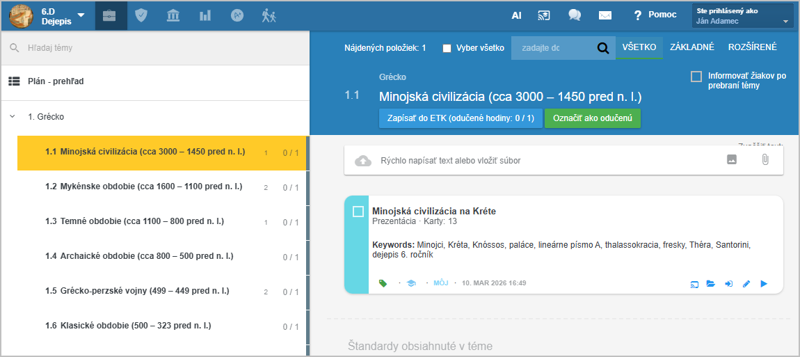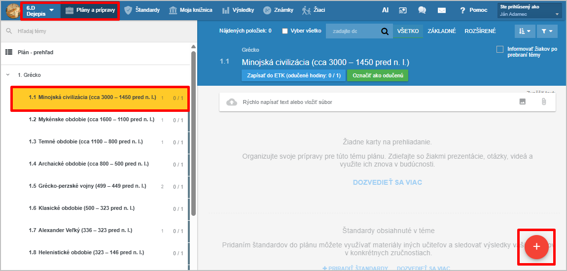 Vo svojom pláne sa nastavte na tému, ku ktorej idete pripravovať prezentáciu. Stlačte červené tlačidlo +.