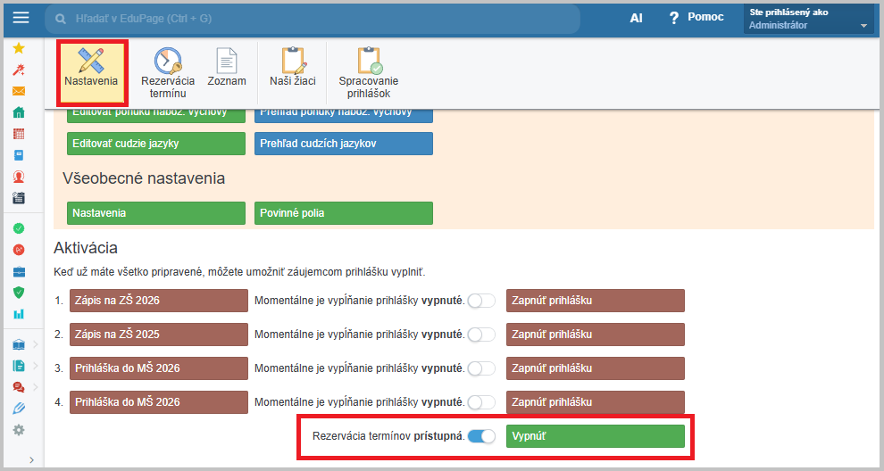 Nakoniec v nastaveniach el. prihlášky zapnite možnosť rezervácie termínov.