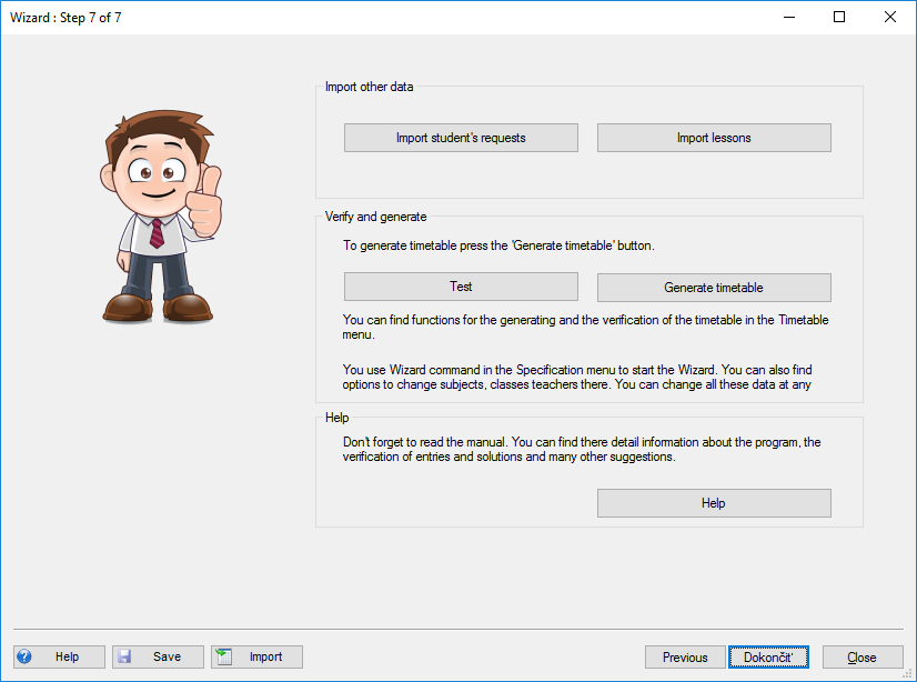 After you enter basic data, you can generate the timetable. Just press button "Generate" to generate the timetable and finish the wizard: