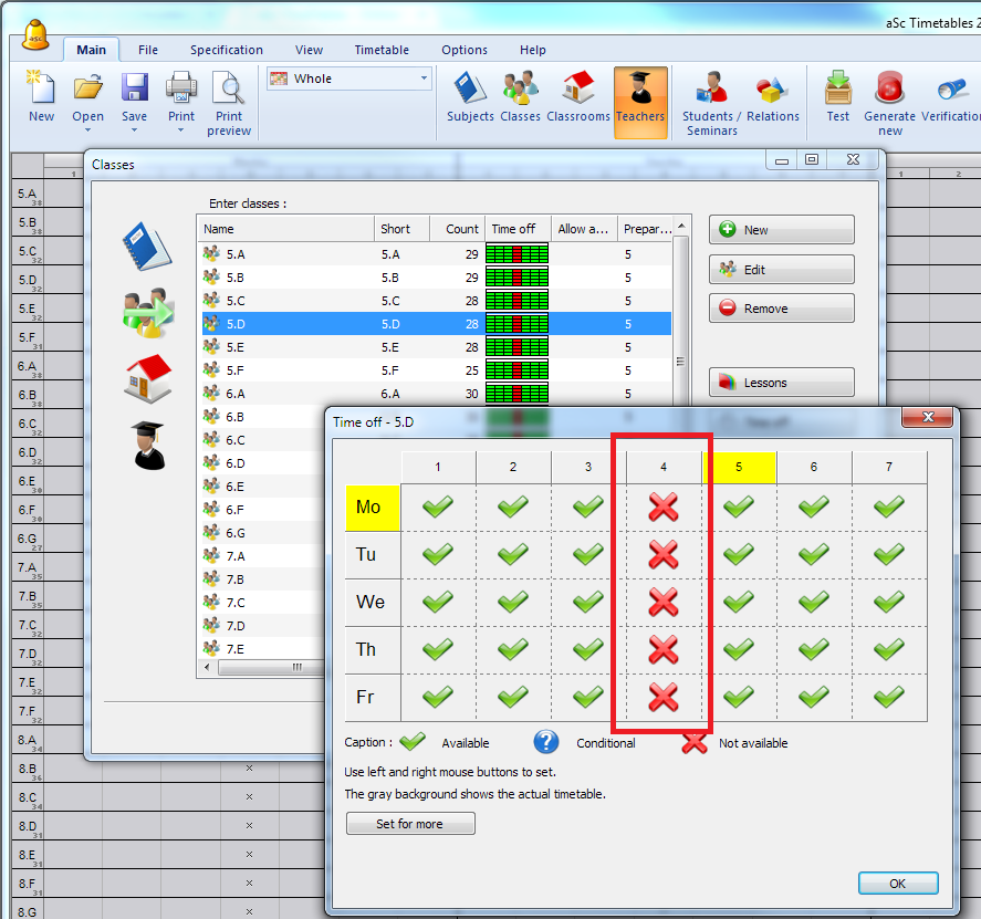 For example this school has forbid all subjects to be on 4th period: