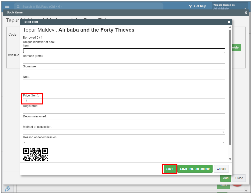 How to print QR codes for added books?