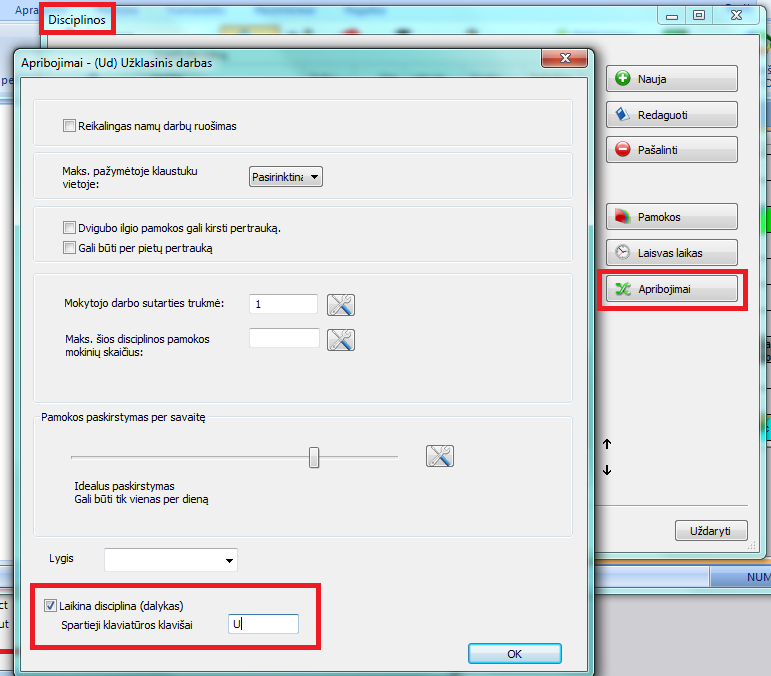 Jei atsirado kokių nors papildomų užsiėmimų, kuriuos reikia įtraukti į mokytojų tvarkaraštį jau PO TO, kai jis yra sukurtas, galite panaudoti laikinas disciplinas (dalykus).