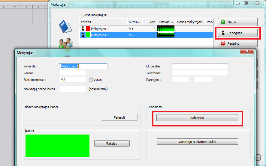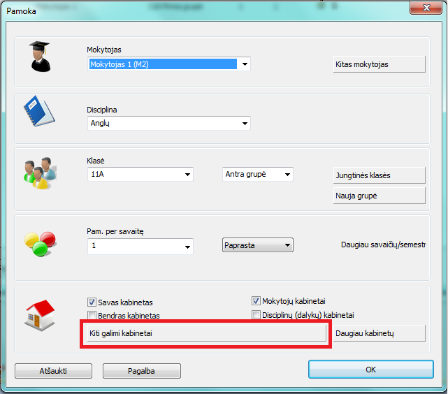 Arba rankiniu būdu nustatyti kitus galimus tų pamokų kabinetus:
