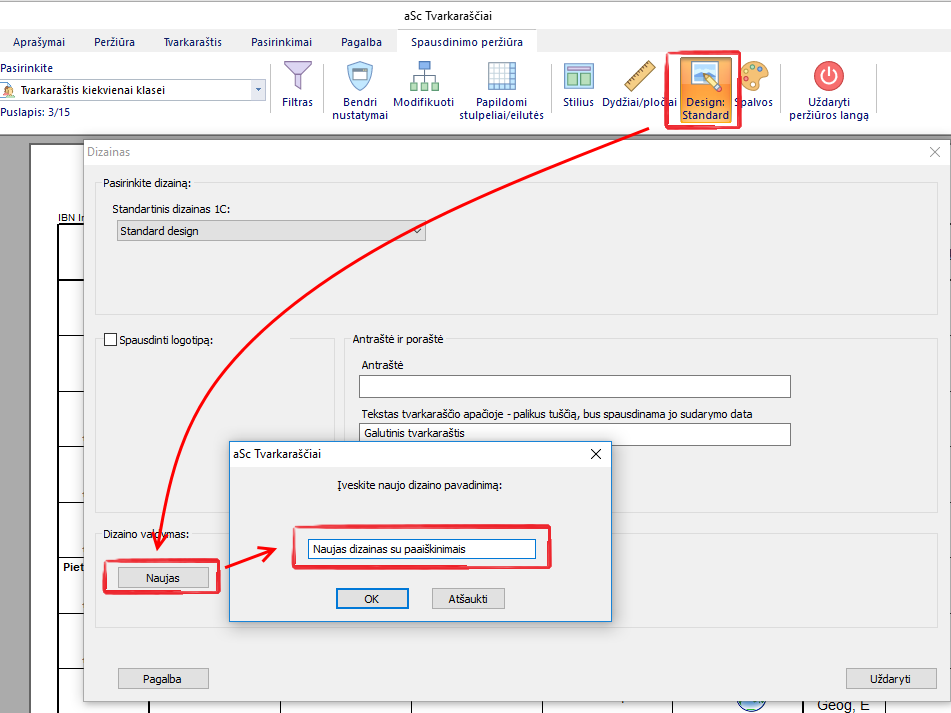 Sukūrus savo dizainą, galite jame pridėti paaiškinimus. Paspauskite dešiniu pelės mygtuku spausdinimo peržiūros lange: