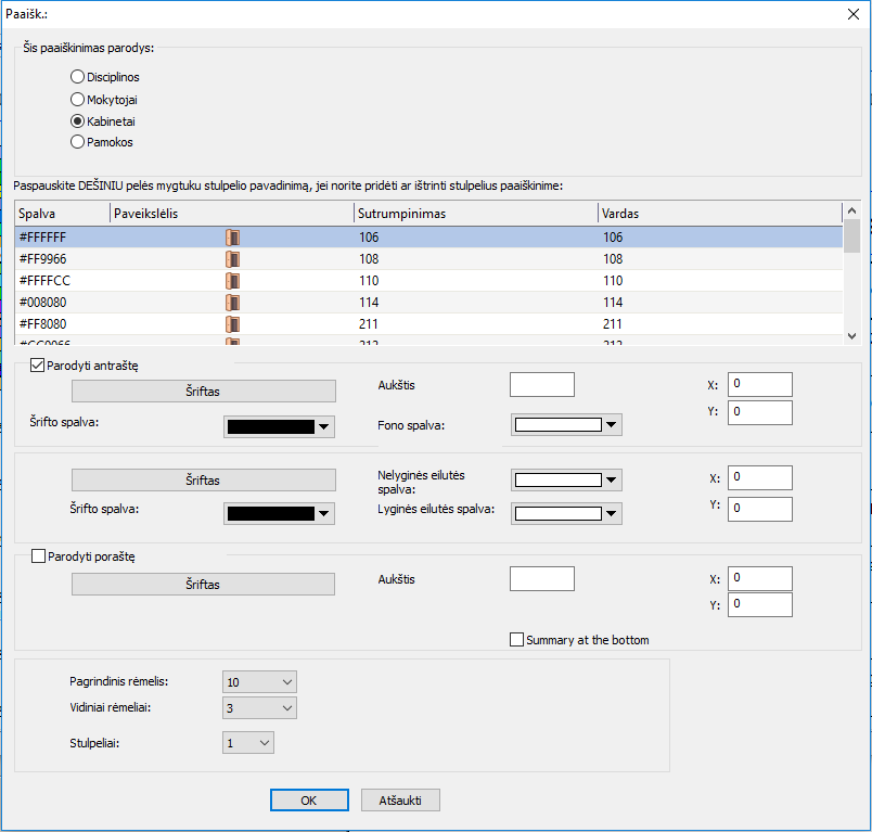 Po tvarkaraščiu galima atspausdinti paaiškinimus - dalykų sąrašą, mokytojų ar kabinetų sutrumpinimų paaiškinimus.