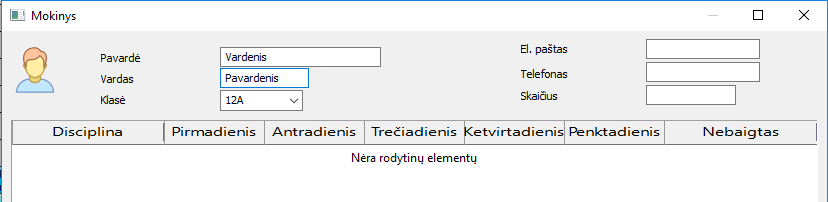 Galima mokinius įvesti po vieną, tuomet tuo pačiu galima nurodyti ir jo pasirinkimus: