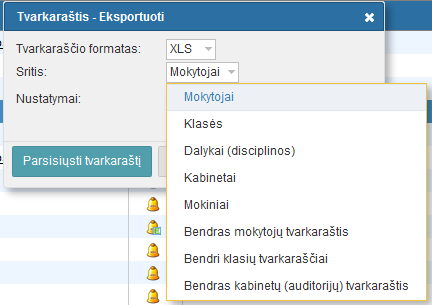 Prieš eksportuojant tvarkaraštį įsitikinkite, kad norimas tvarkaraštis yra įkeltas į "Tvarkaraščių Internete" svetainę.