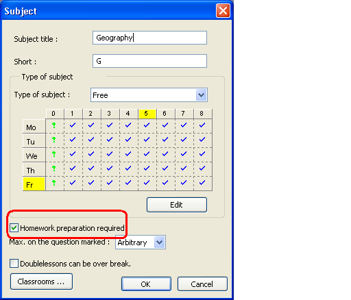 Kada dodajete novi predmet ili mijenjate postojeći, možete koristiti kućicu koja je na slici osvjetljena da bi ste označili predmet koji treba domaću zadaću.