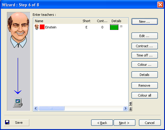 • Detalji – unesite ostale opcije za učitelja. To uključuje najveći broj of windows (gaps), broj dana koji može predavati i najveći broj uzastopnih lekcija.