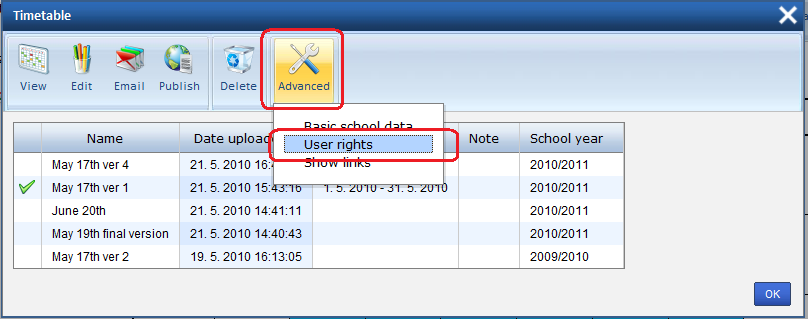 מערכת שעות זו פורסמה באמצעות "פונקצית הפרסום". הציבור יכול לראות כמה חלקים ממנה, המורים יכולים לראות חלקים אחרים לאחר ההתחברות.