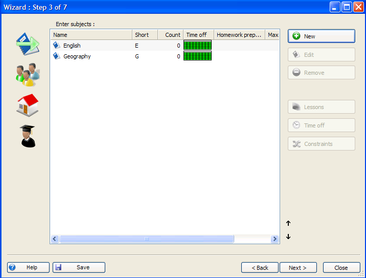 בשלב זה תזין את מקצועות הלימוד שילמדו השנה בבית הספר :