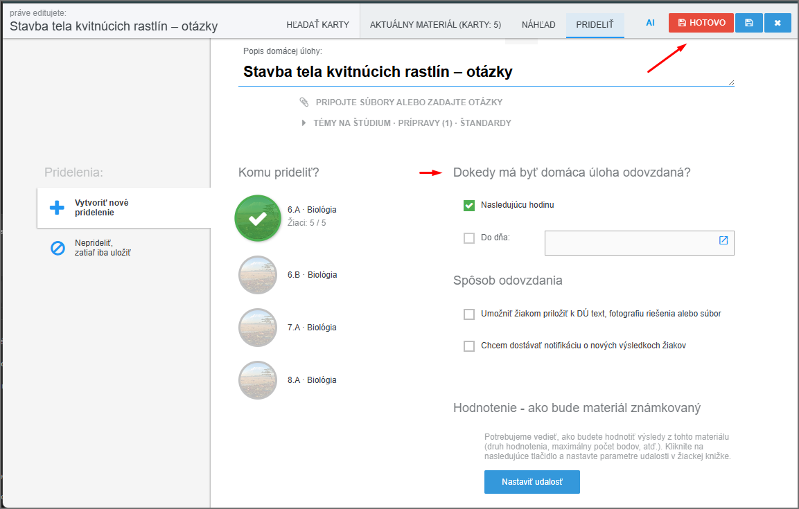 Ak radšej používate mobilnú aplikáciu, pozrite si návod: Ako v aplikácii prideliť žiakom materiál, ktorý už máte pripravený?