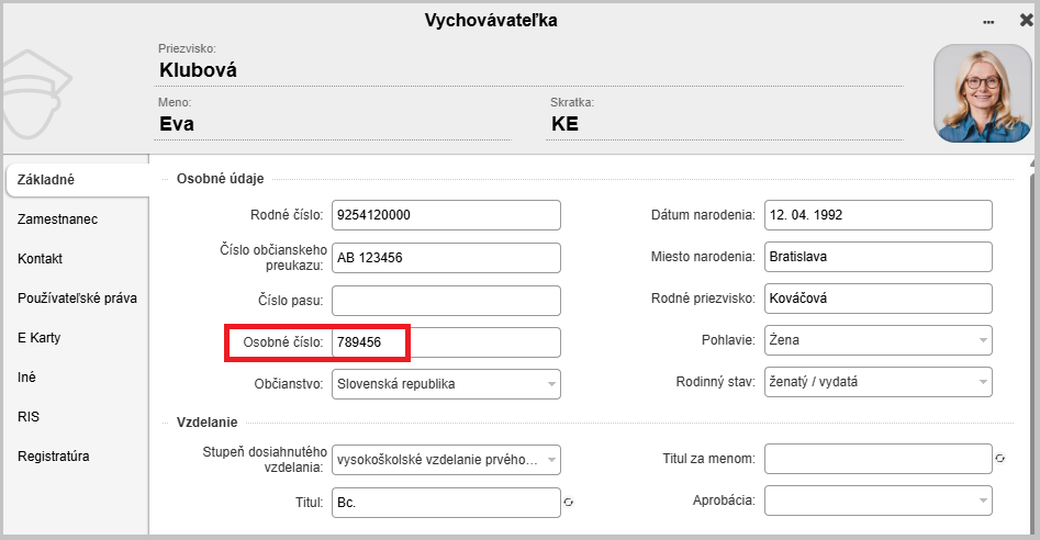 Osobné spisy zamestnancov sa číslujú automaticky s EduID zamestnanca.