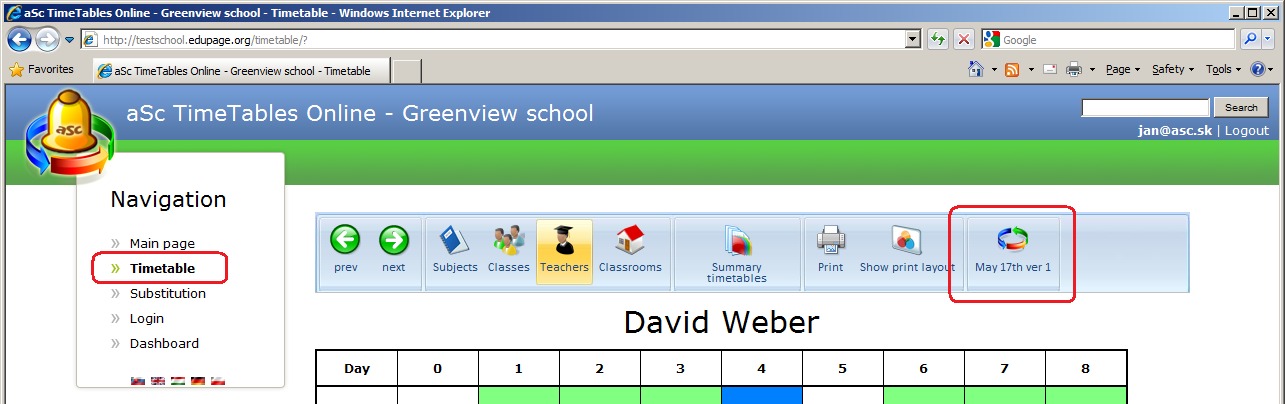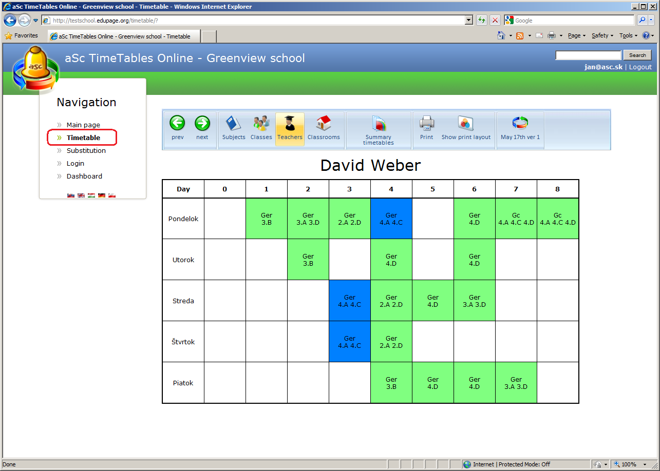 Once the administrator has send the timetable to teacher or has published it as official timetable, each teacher can access it with his name and password.