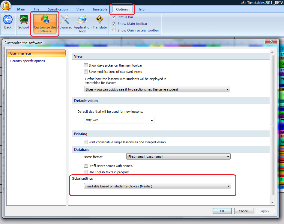 Timetable based on students picks (Master) – shows all courses in one row, regardless of grade. This option uses high school generator that can move students between sections during the generation.