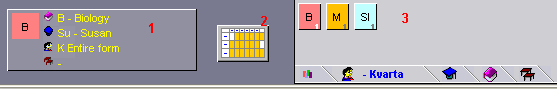 Prvá ikonka zobrazuje všetky neumiestnené kartičky. Zvyšné ikonky zobrazujú kartičky vybranej triedy, učiteľa, predmetu, či učebne.