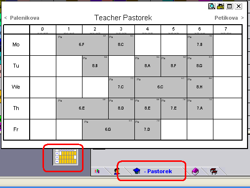 Môžete kliknúť na tlačítko v strede a zobrazí sa rozvrh daného učiteľa alebo triedy.