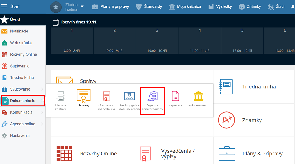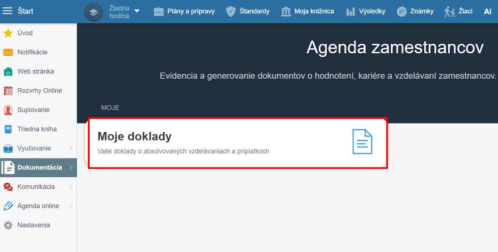 V ľavom menu vyberte Dokumentácia, Agenda zamestnancov.
