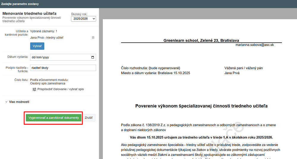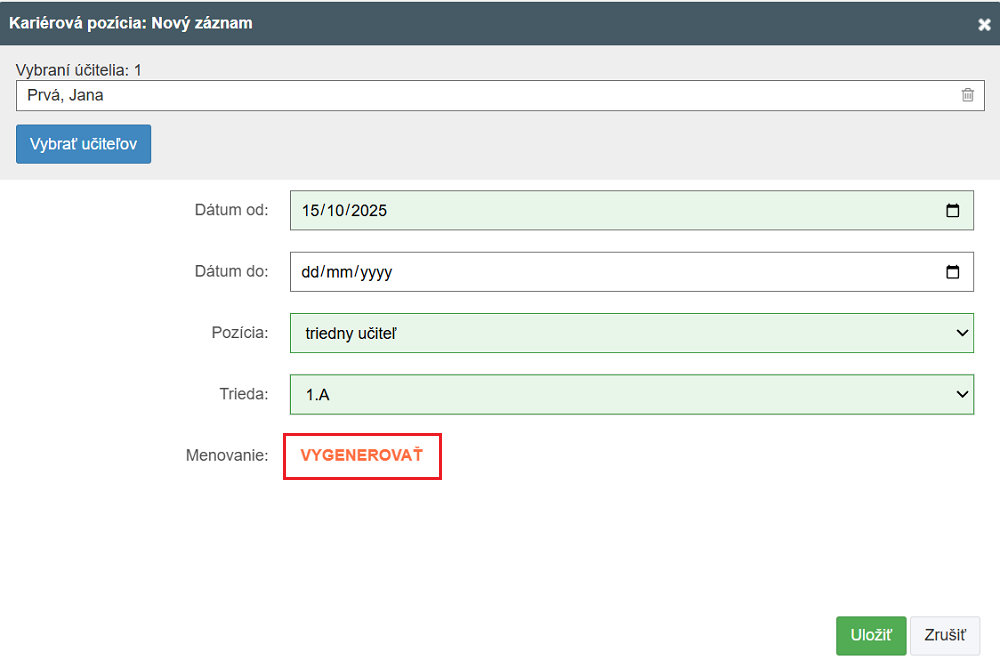 Menovací dekrét do kariérovej pozície vygenerujete cez Pedagogickú dokumentáciu v sekcii Vzdelávanie, hodnotenie a kariéra učiteľov.