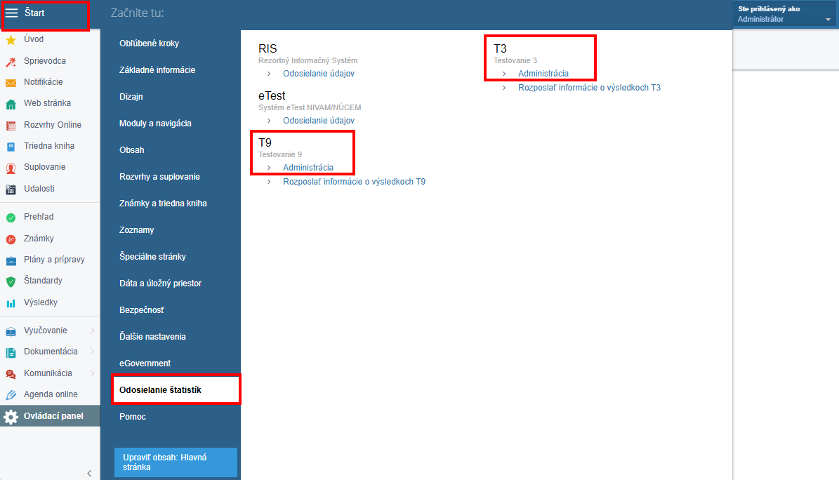 Kliknite na T9 - Administrácia alebo T3 - Administrácia: