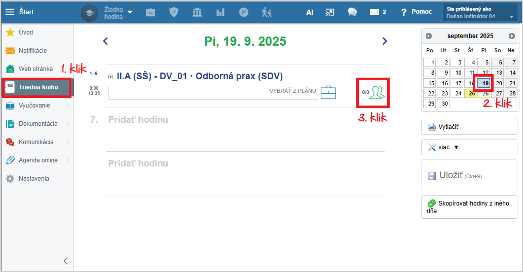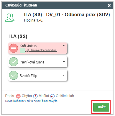 Uložte dochádzku na hodine.