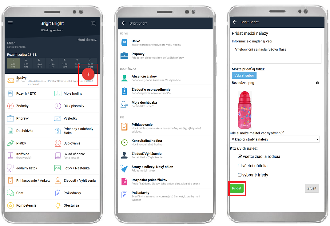 Rodič ani žiak nevedia do zoznamu pridávať nájdené veci. Pridávať nájdené veci môže iba učiteľ.